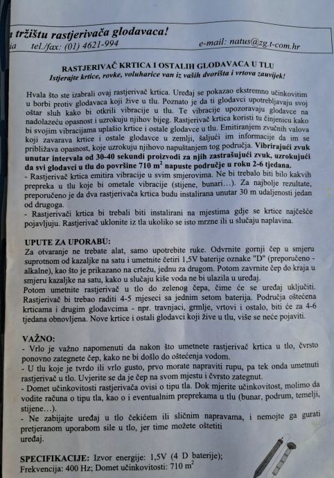 Rastjerivač krtica i ostalih glodavaca u tlu.
