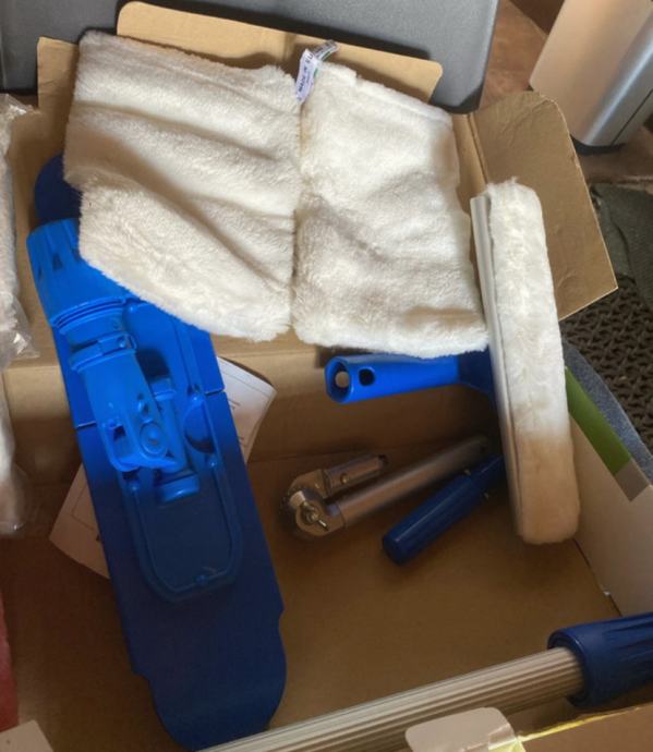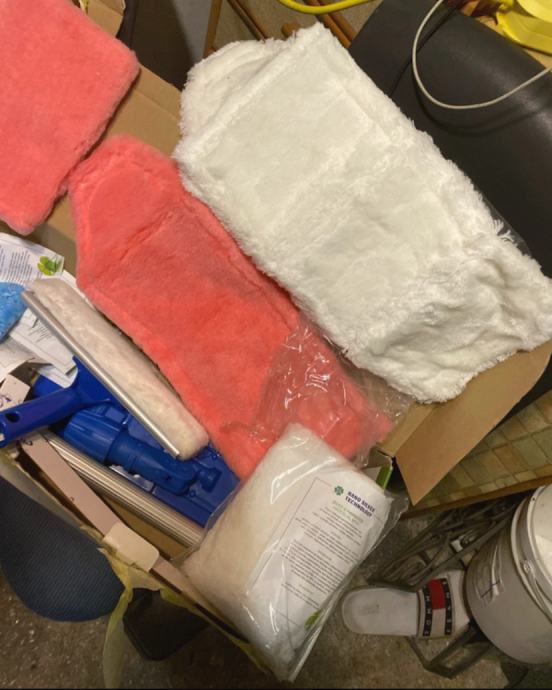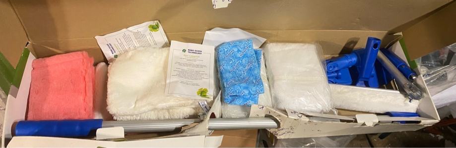 Set ima deset krpa za čiščenje svih vrsta materijala. Plus tu je produzni stap sa nastavcima za brisanje poda I stakla.