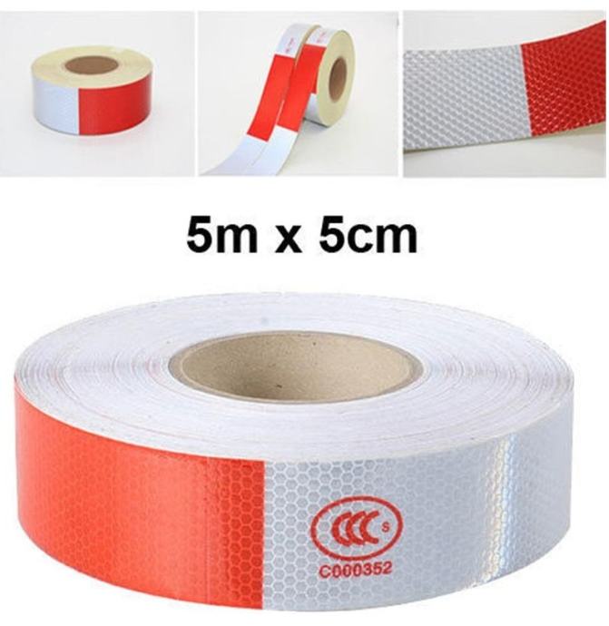 Reflektirajuća traka od 5 cm * 5M, bijela, crvena sigurnosna vrpca, uočljiva traka za zagrijavanje, reflektirajuća za dodatnu opremu za automobil