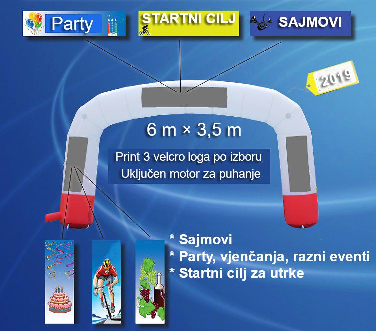 REKLAMNI LUK ZA SAJMOVE, PARTYE, EVENTE, START/CILJ ZA UTRKE 6×3,5 m