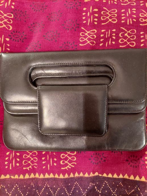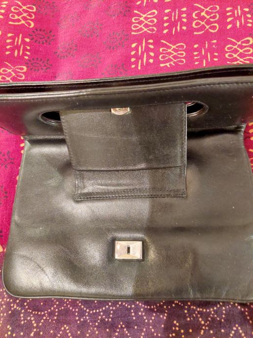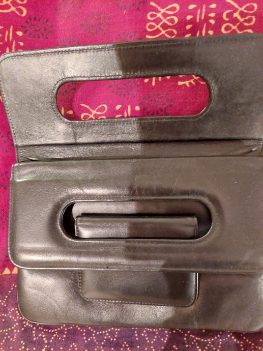 Mala retro torbica sa dva preklopa. Zanimljivo zatvaranje. Nema remen, nosi se u ruci ili ispod. Crne je boje