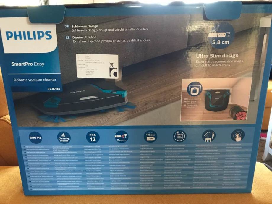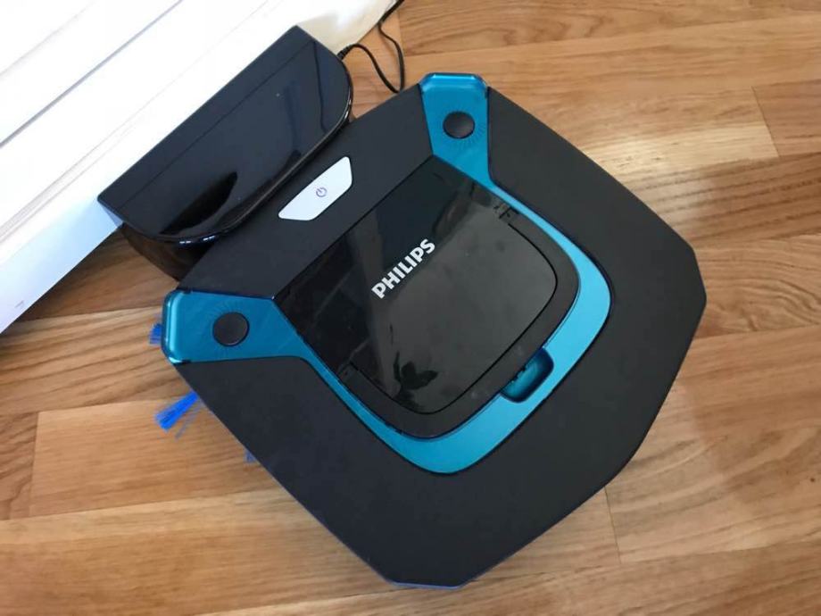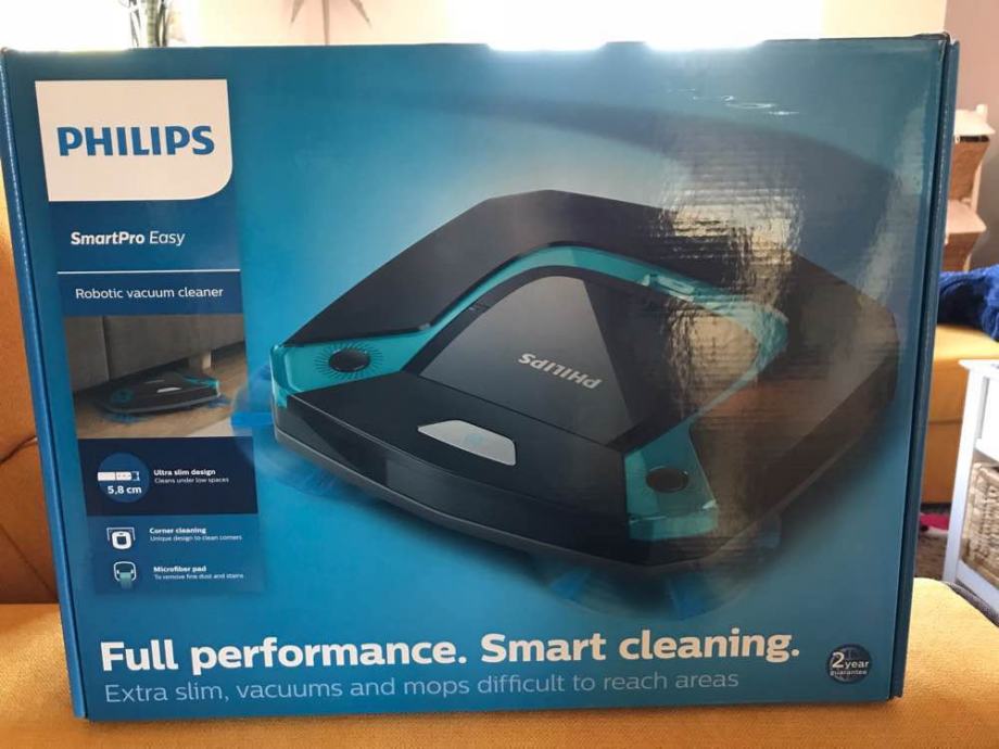 Novi robot usisavač marke Philips. Sadrži dvije rotirajuće četkice i krpa za pranje podova. Isproban i vraćen u kutiju.