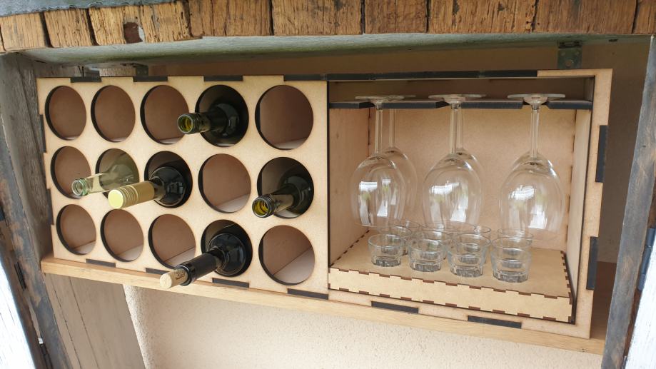 - police za čaše i flaše + 6 čaša na stalku i 12 čašica za žestoko piće