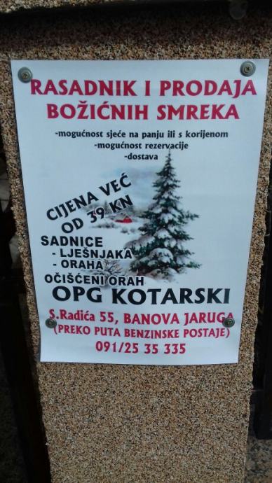 Trazim osobe koji zele i smiju prodavati bozicna drvca.Papiri uredni.AKCIJA ZA SADNICE LJESNJAKA.Jednogodisnji od4kn.Dvogodisnje 10kn.Ostatak od sadnje.BOZICNA DRVCA PRODAJA OD 1. 12.Rasadnik se moze pogledati ranije i rezervirati drvce.Kupcima dajem savjet iz iskustva o nasadu smreka ljesnjaka oraha.Ako sami vadite sadnice 20 % jeftinije.Njajbolje je vidjeti ljesnjake u rodu pa da si sami izaberete vrstu ljesnjaka.