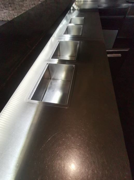 Šank je rastavljen u 7 jedinica, svi dijelovi su posebno skladišteni i sve se može spojiti kao na slici ili bez vanjske obloge i gornje ploce ukoliko netko želi slagati Šank prema svojem prostoru. Jedino su se prilikom rastavljanja morale ukloniti led trake te se one moraju kupovati nove.