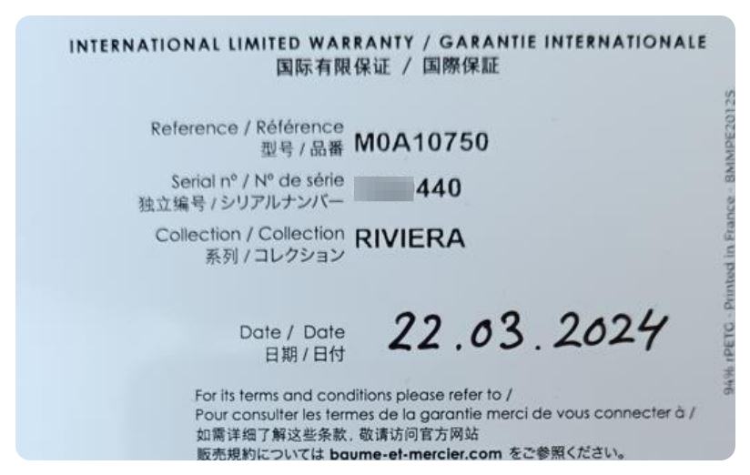 Cijena novog sata „Baume & Mercier“, model 'Riviera 10750', na web-stranicama tvrtke „Baume & Mercier“ je 5150 EUR, bez dodatnih gumenih remena i čelične narukvice.