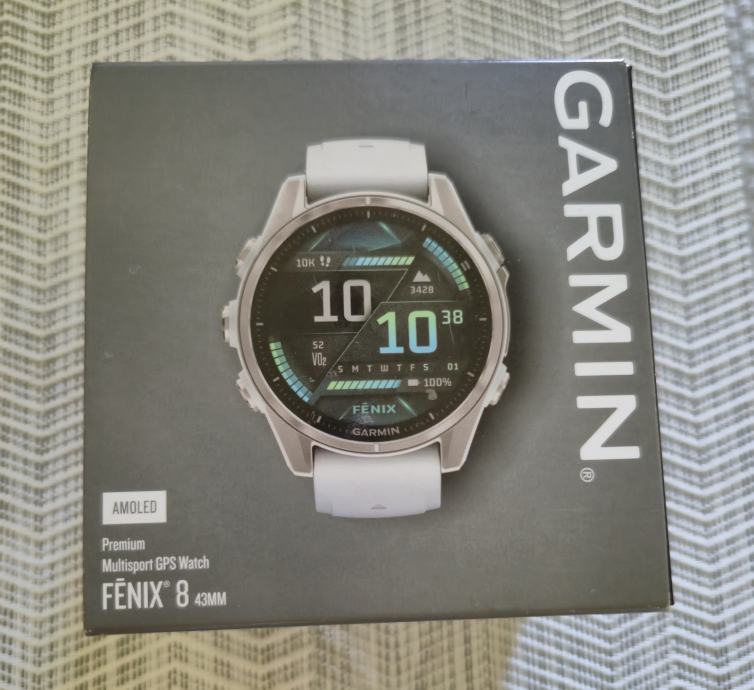 Sat Garmin Fenix 8 43mm AMOLED Silver, Whitestone remen