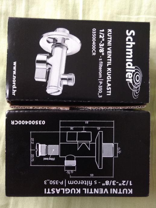 Schmidler kutni ventil, kuglasti, s filterom. Novo. Dva komada.