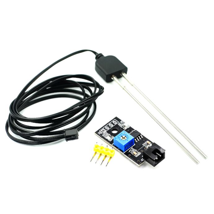 Senzor vlažnosti tla za vanjsku upotrebu (naravno, može se koristiti i unutra), dolazi s 1.3 m žice, ima analogni i digitalni izlaz s podesivim pragom, radi s 3.3 i 5 V napajanjem i logikom.