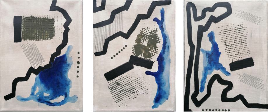Serija od tri autorske slike, akril na platnu. Dimenzija svake slike je 30 x 40 cm.