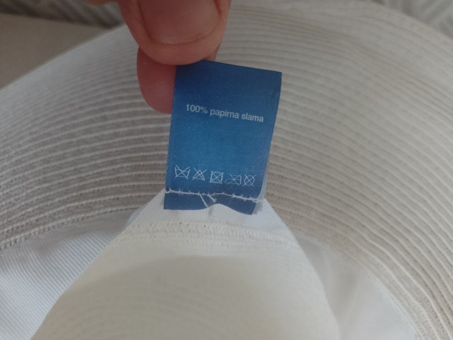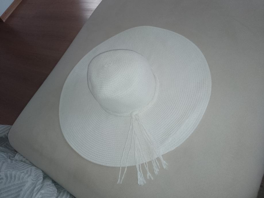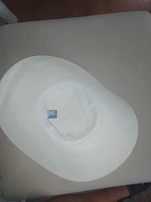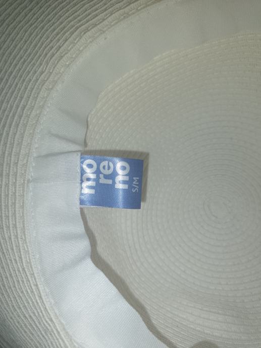 "Moreno". Promjer oboda 46 cm. Nošena 2-3 puta. Ne vide se nikakvi tragovi korištenja. Uredna. Materijal 100 % papirna slama.