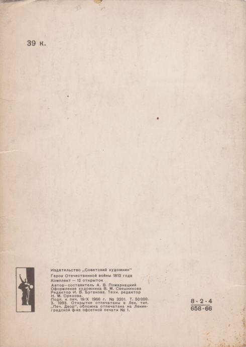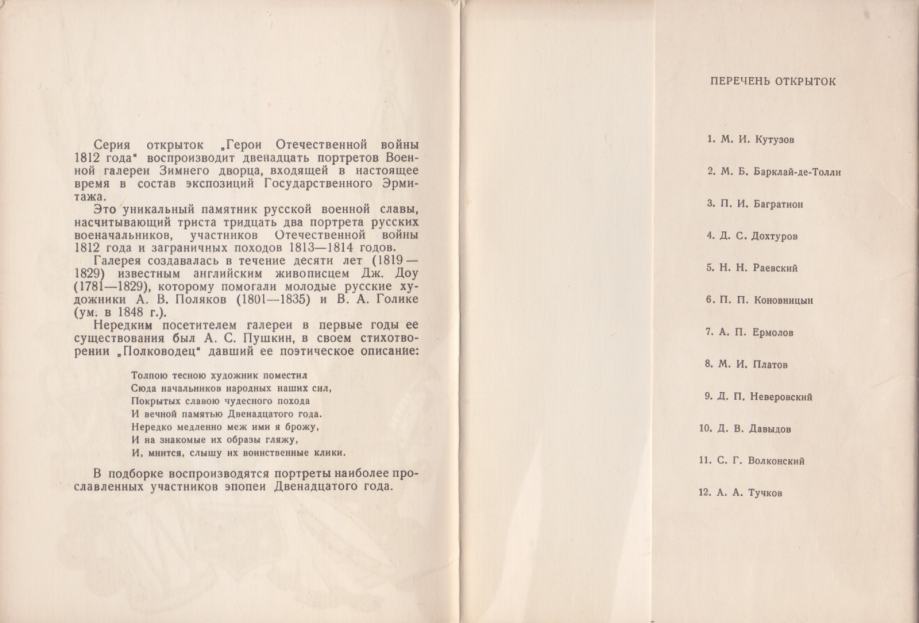 Set od 12 razglednica u boji "Heroji otadžbinskog rata 1812. godine", Lenjingrad (danas Petrograd) 1966.