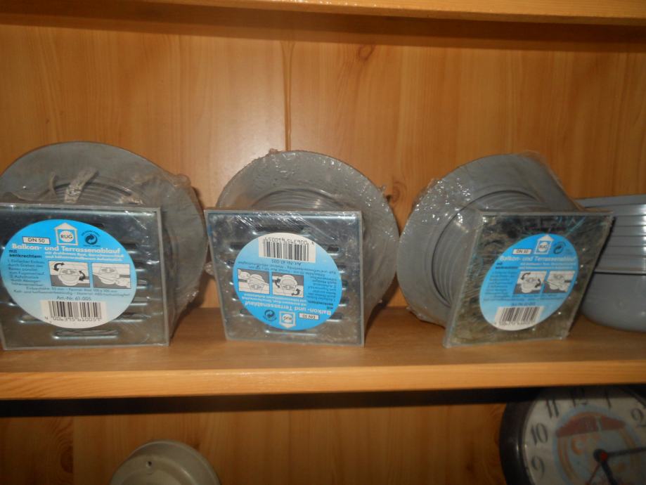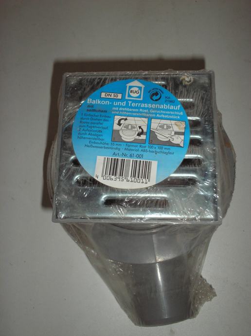 Novi, neraspakirani - odvodnici vode s terasa i balkona, sivi, metalna rešetka, plastični sakupljač i odvodnik,, njemačka kvaliteta vrlo povoljno!
