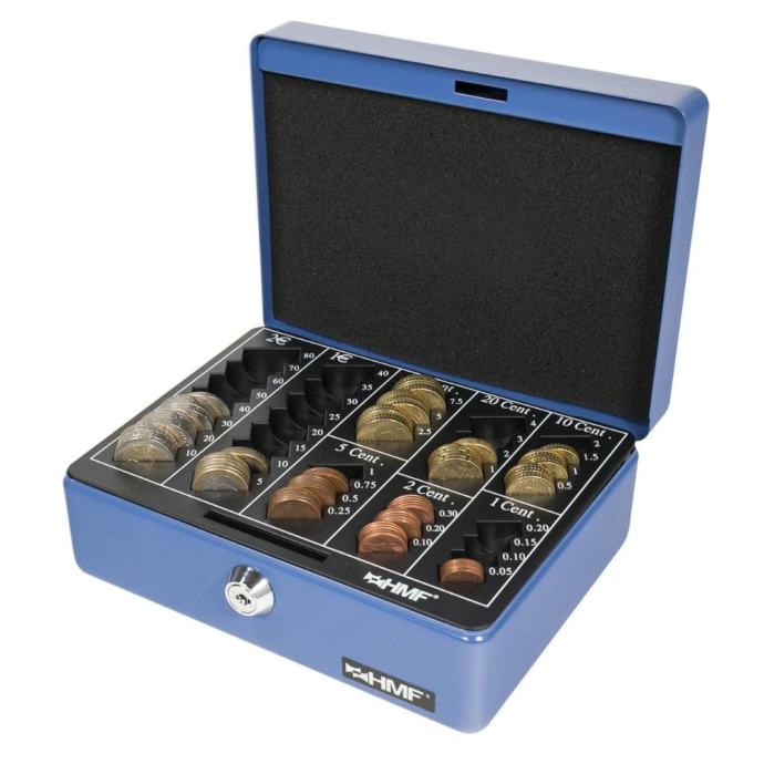 Sigurnosna kaseta za novčanice i kovanice – HMF 20 cm plave boje