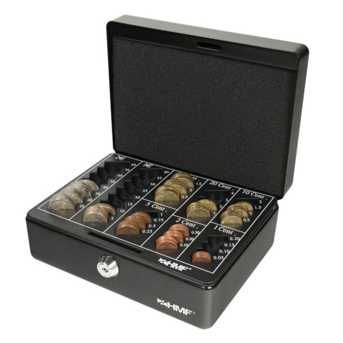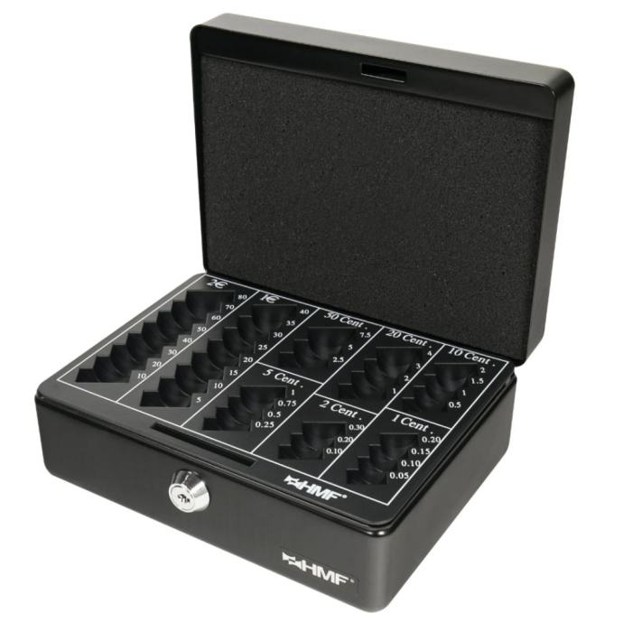 Ova sigurnosna kaseta s umetkom za euro kovanice savršen je izbor za organizirano i sigurno rukovanje novcem. Bez obzira koristite li je u poslovne svrhe, kod kuće ili tijekom putovanja, osigurava pouzdanost i dugotrajnu upotrebu. Proizvedena je od izdržljivog, bešavno vučenog čeličnog lima, dok crni praškasti premaz otporan na ogrebotine osigurava elegantan izgled i dugovječnost.