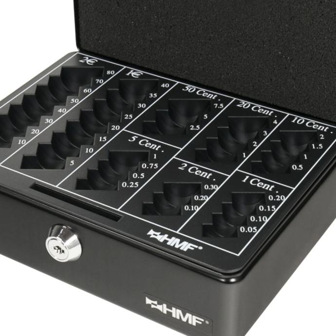 S odvojivim umetkom koji sadrži 8 odjeljaka za kovanice od 1 centa do 2 eura, organizacija novca nikada nije bila jednostavnija. Ovaj praktični dodatak omogućuje vam brzo i lako sortiranje kovanica, bilo da je riječ o poslovanju ili kućnim financijama.
