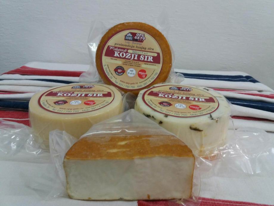 proizvodimo više vrsta kozjeg sira. Recepturu možemo prilagoditi prema potrebi kupca. sir je proizveden od mlijeka iz vlastitog stada u registriranom objektu. Meki kozji kuhani sir 13 eura /kg moguća dostava polutvrdi sir 20 eura kg,