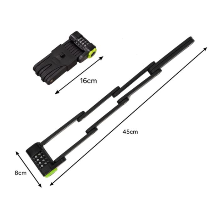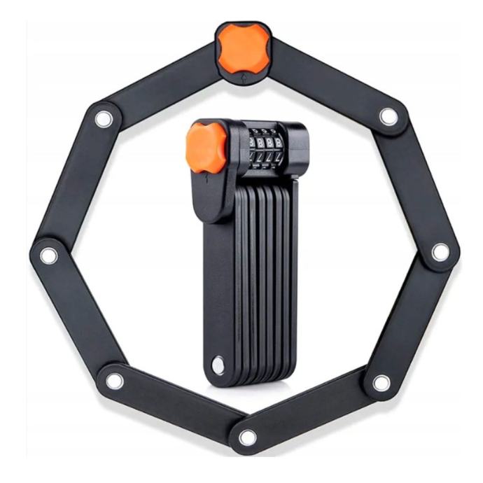 Sklopivi lokot za bicikl idealan je izbor za sve bicikliste koji traže visoku sigurnost i praktičnost. Ovaj lokot pruža učinkovitu zaštitu vašem biciklu, bilo da ga parkirate kod kuće, na poslu ili na putovanjima. S 4-znamenkastim kodom i 10.000 kombinacija, osigurava visok nivo sigurnosti i štiti vaš bicikl od krađe.