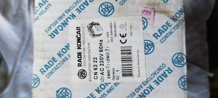 Sklopnik CN 63 "KONČAR". Zavojnica 220 V. Sklopnik je novi u original kutiji. Cijena 240.