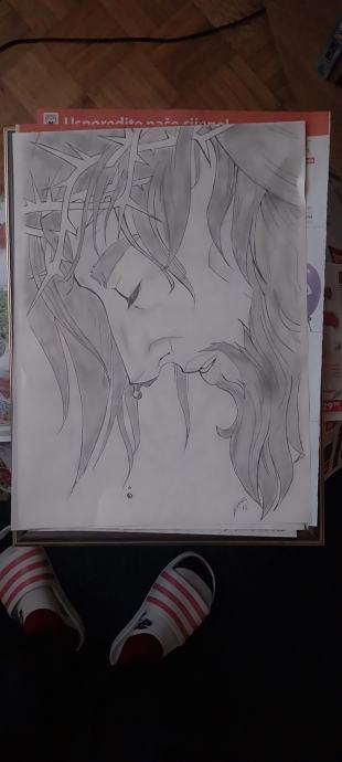 Slika Isus, neuramljena. Rucni rad.