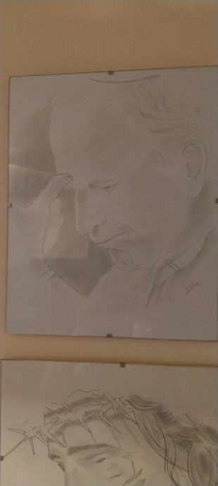 Slika papa Ivan Pavao II, uramljena. Rucni rad.