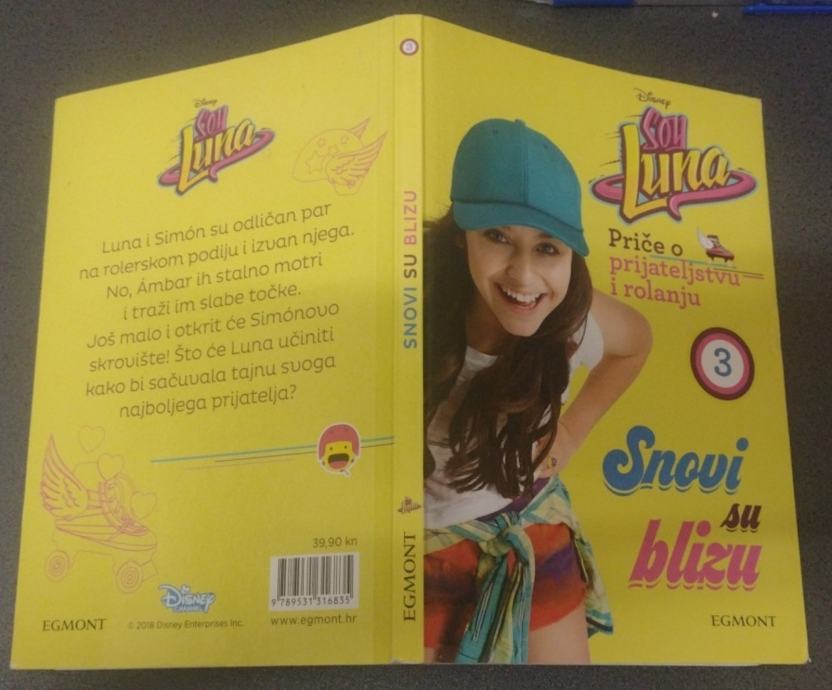 Prodajem dječju knjigu iz serijala Soy Luna - "Snovi su blizu - Priče o prijateljstvu i rolanju". Ovo je treća knjiga iz ove Disney edicije, objavljena 2018. godine. Knjiga prati avanture Lune i njezinih prijatelja, ispunjene pričama o prijateljstvu i strasti prema rolanju. Izdavač je Egmont, a knjiga je na hrvatskom jeziku.