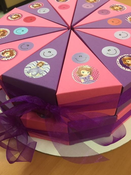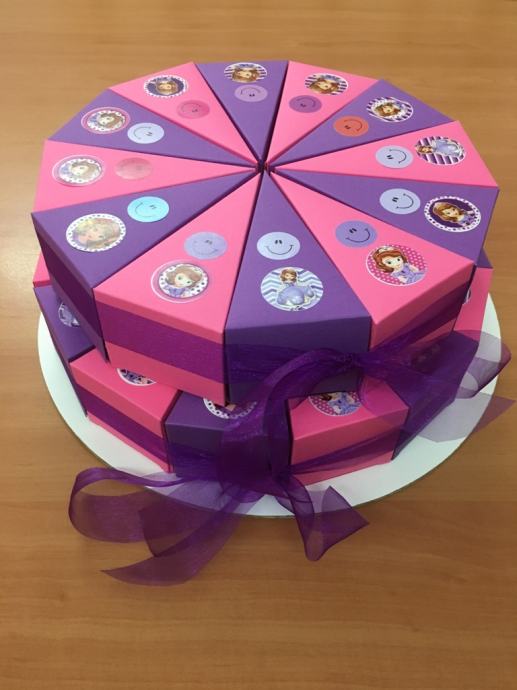 Samosložive kutijice (nema ljepljenja) u obliku kriške torte izrađene od 250 gramskog hamer papira u 14 boja koje birate po želji (zadnja slika u galeriji).