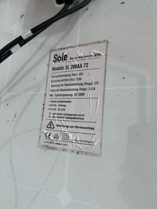 Prodaju se rabljeni solarni paneli, nazivne snage 200W. Ispravni su.