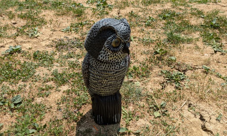 Sova s rotirajućom glavom - model predatora za plašenje ptica, ima rotirajuću glavu za 180° koja će se pokrenuti čak i pri najmanjem povjetarcu.