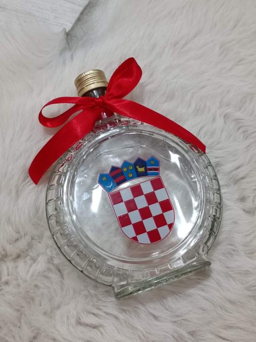 Prodajem staklenu bocu, pljosku, bukliju sa hrvatskim grbom.