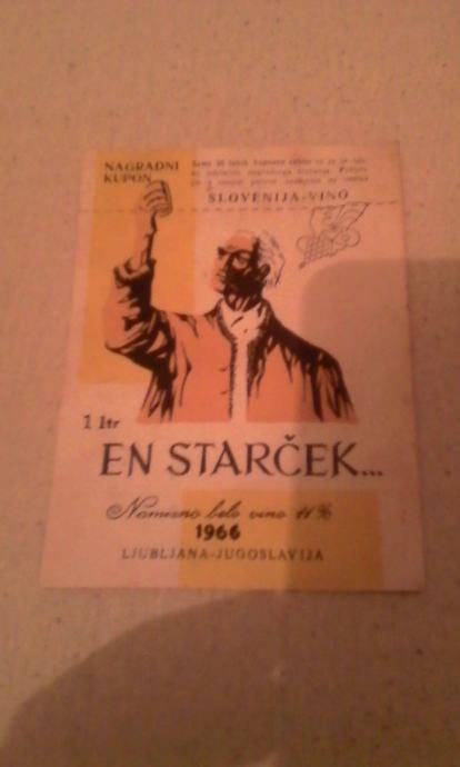 Stara vinska etiketa en starček 1966 jugoslavija,dimenzije 12 x 9 cm,šaljem pouzečem ili osob preuz u zg.javit na mail