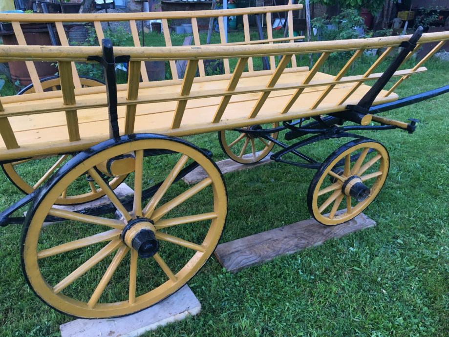 Prodajem starinska kola. Premazano drvocidom i obojano. Može ostati i služiti ovako kao što jest a može se presložiti da bude kočija kao što je bilo prvobitno. Uključeno ručna kočnica, rudo, te ižica (vagir) za vuču..