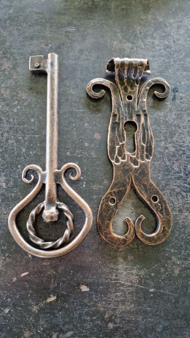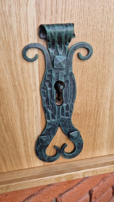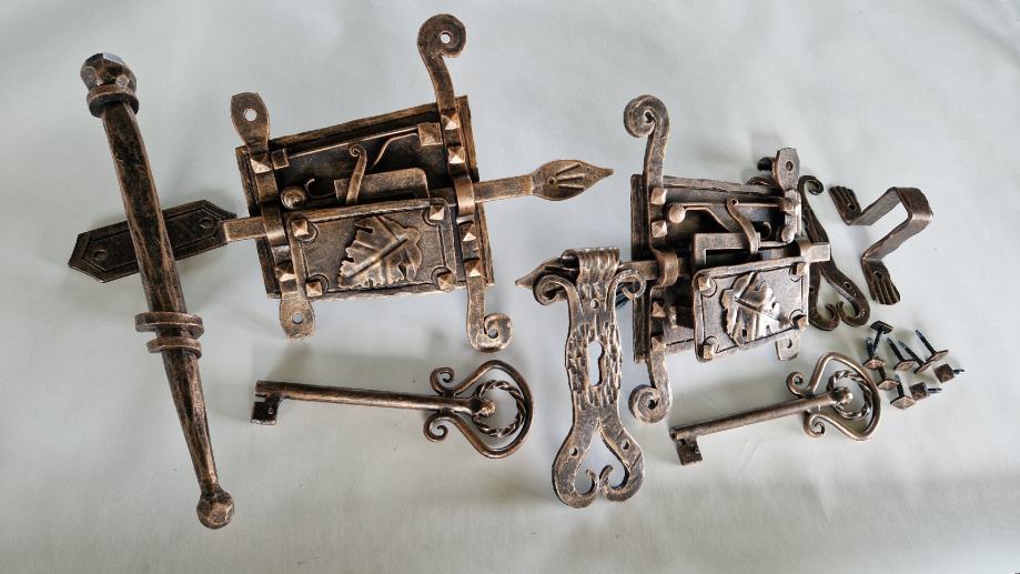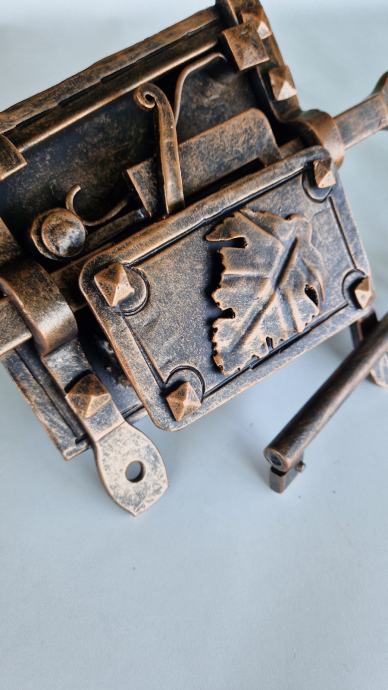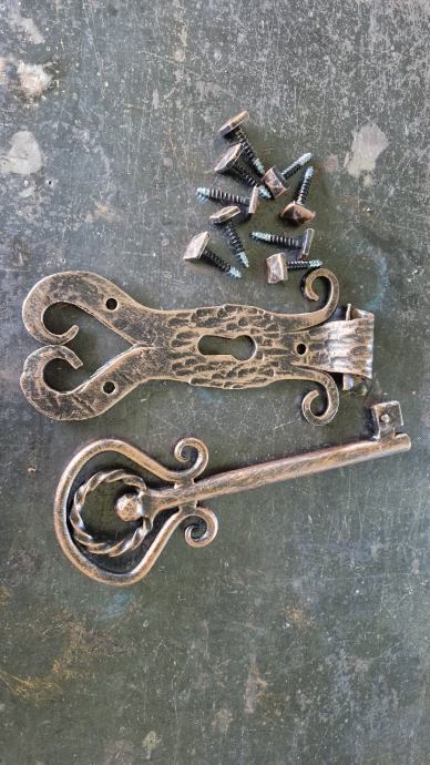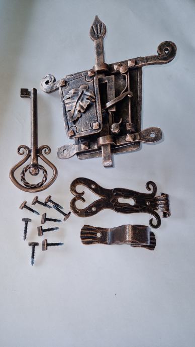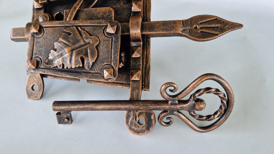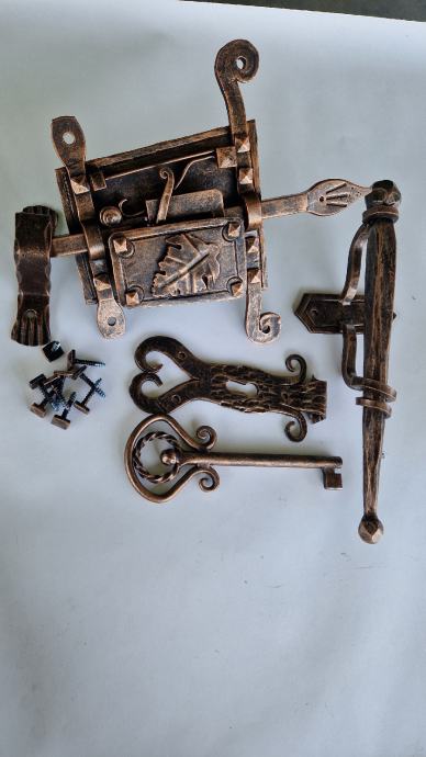 Vidljivi mehanizam sa nutarnje strane, u kompletu je jedan ključ, rozeta i ukrasni kovački vijci.