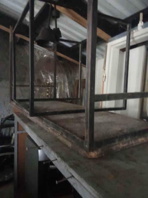 STOL STARI ŠKOLSKI V 75 cm,D 130 cm Š 50 gore je blažuljak 25 e,stol je na stalaži domaći rad V 150 D145 Š 50 cm stol 25 e,stalaža 35 e