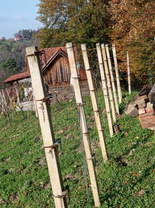 Pvc stupovi cca 40 kom.betonski stupovi cca 40 kom,korišteni u vinogradu.Pvc izvađeni,betonske bi trebalo izvaditi.Cijena pvc 30 kn.betonski 40 kn.