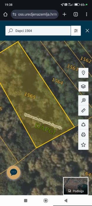 Suma u dapcima blizu glavne ceste,2713 kvadrata broj cestica 1564,1565