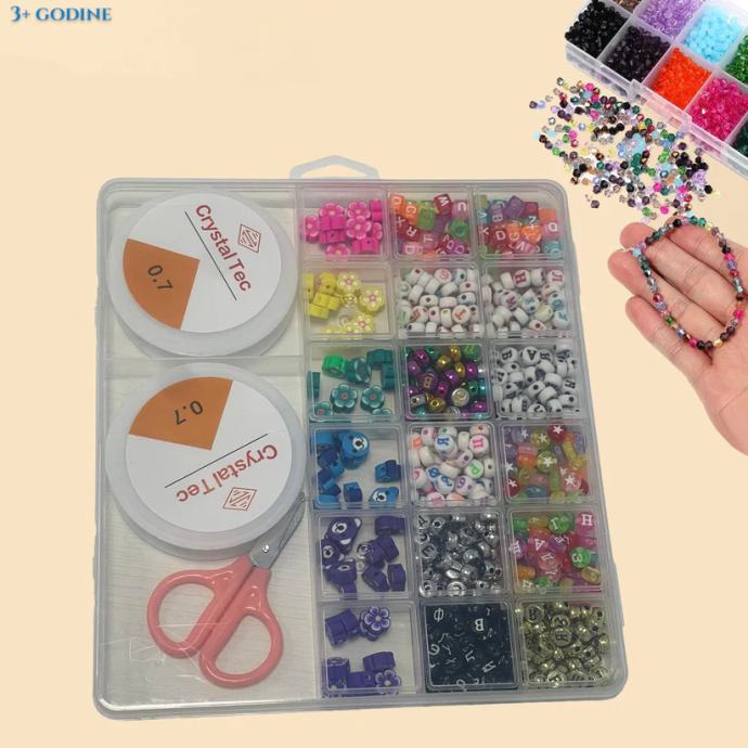 Set za izradu nakita razvija djetetovu spretnost i finu motoriku dok veselo slažu i nižu perle.