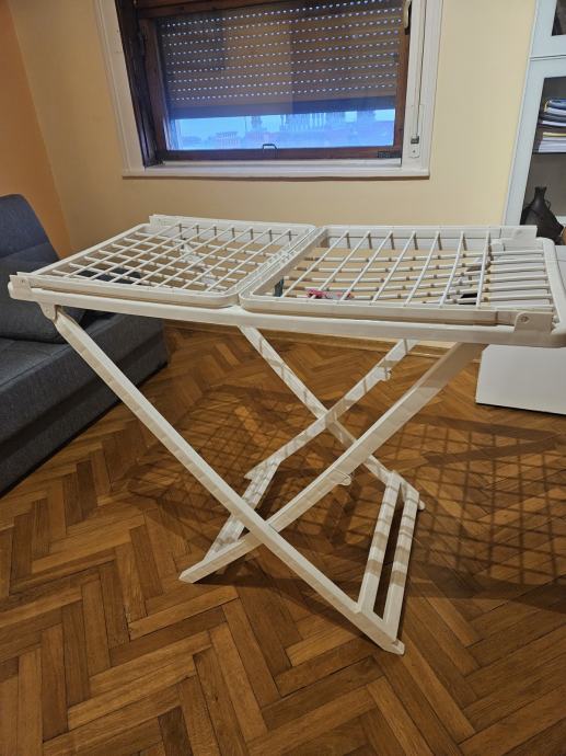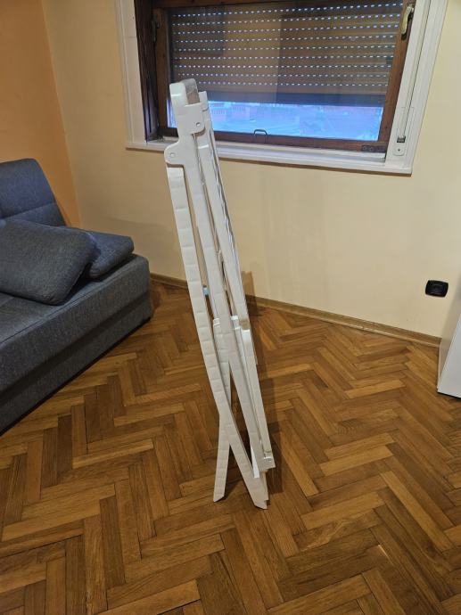 Prodajem očuvano sušilo za rublje.Napravljen od čvrste plastike.Ne hrđa, otporan na kišu,led i toplinu.Sklopiv.Otvoren 202 cm x Š56,5 cm.