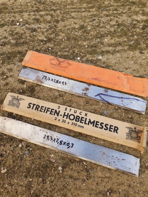 Prodajem dvije pločice švedskog čelika od hoblerice za izradu noževa, dimenzije istaknute na slikama u cm!