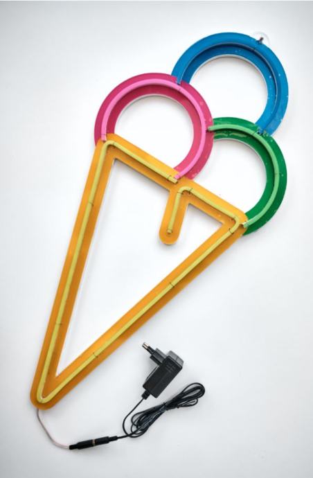 Proizvod je namjenjen za unutarnje i vanjske prostore, a svojom paletom boja uočljiv kako bi privukao što veći broj konzumenata. Pogodan je za lagano prenošenje po potrebi, mala potrošnja električne energije, LED neon flex rasvjeta, ekvivalent klasičnom neonu, vidljivost tijekom dana i noći.