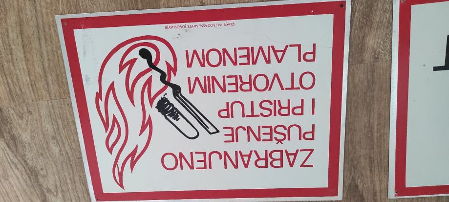 Metalne table za opasnost.. Starije.. Komad 3 eura.. Stanje vidljivo na slikama... Neke korištene , neke ne korištene