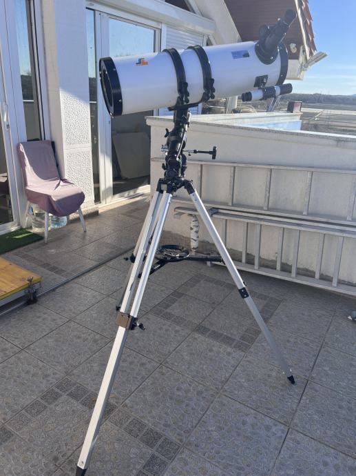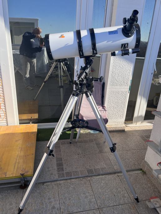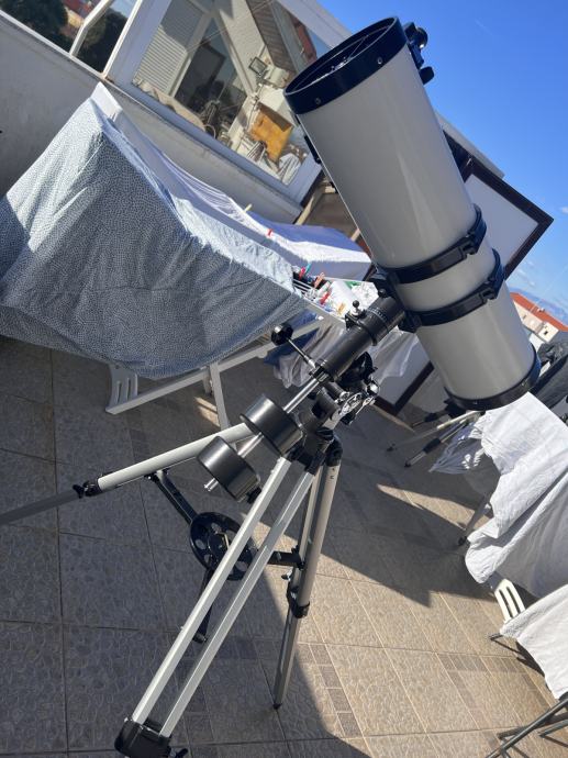 Teleskop novi izvaden iz kutije samo za slikanje, uz teleskop idu 2 okulara, barlowa leca,”erecting eyepiece 1,5x” za ispravljanje slike, filter i jasno tronozac sa montazom.