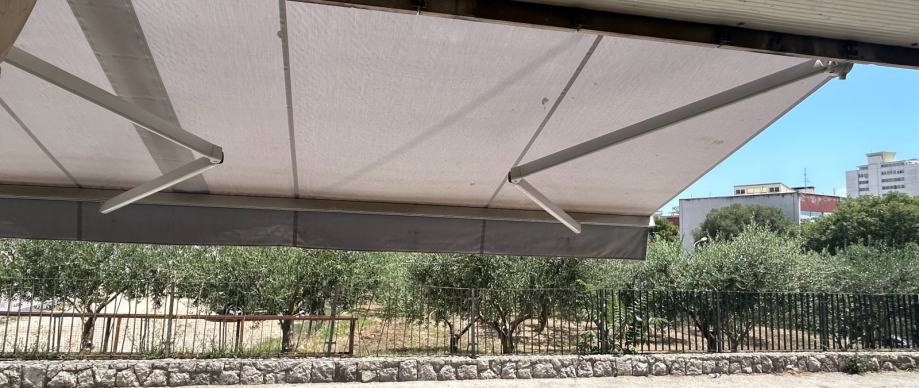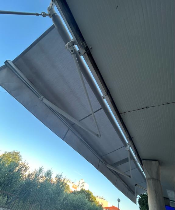SUMAN tenda u odlicnom stanju 6x2,5 m, mehanizam kao nov, impregnirano akrilo platno, otporno na trganje, mogucnost htiska, UV zastita, prozracno