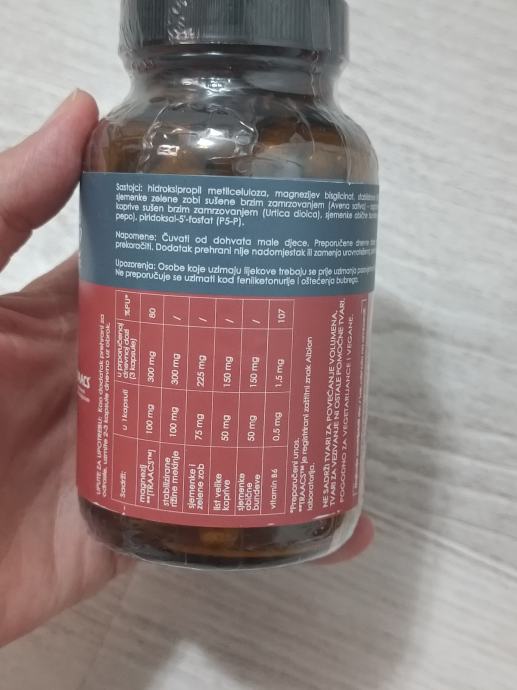 Magnezij je također nadopunjen vitaminom B6 (piridoksal 5-fosfat), čija je funkcija naglasiti djelovanje magnezija.