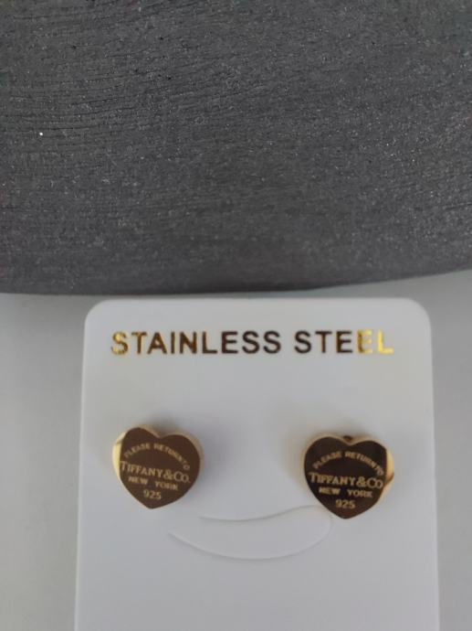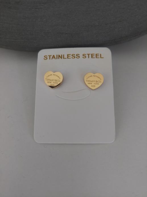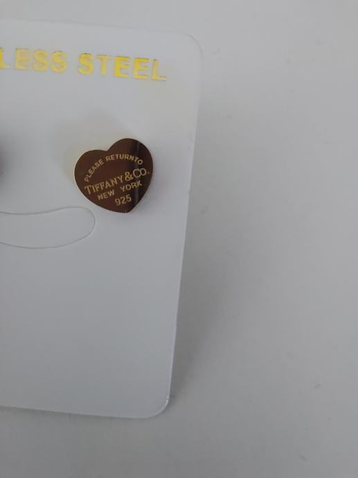 Prodajem nove Tiffany naušnice u obliku srca, zlatne boje. Izrađene su od nehrđajućeg čelika, lagane su i prikladne za svakodnevno nošenje.