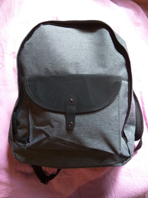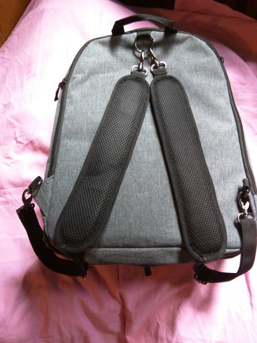 Sl.2.3.4.Sivi ruksak,prednji džep,stražnji pretinac za laptop koji se može skidati pomoću patent zatvarača,remeni na podešavanje mogu se skidati