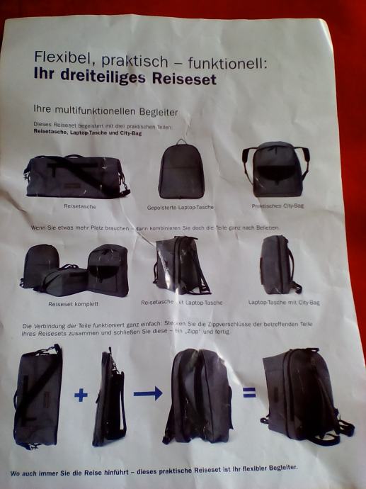 Torba-1x-Ruksak-2x za jednodnevno putovanjeNovo-PUTNI SET-kombinacija
