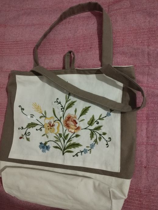 Torba,ručno rađena sa umetcima od ručnog veza,širina 36,dužina40cm.