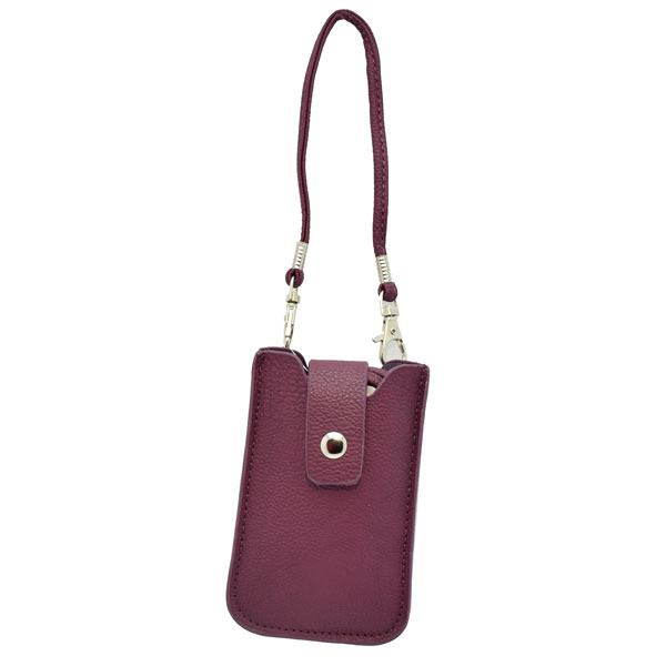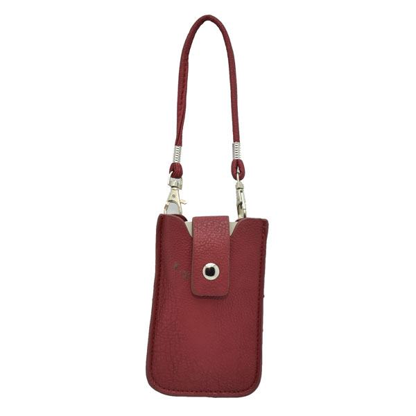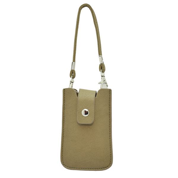 Torbica za smartphone i mobilne telefone, izrađena od umjetne kože. Dimenzije torbice: 8.5x13 cm. Torbica je otvorenog tipa (poput etuia), a djelomično se zatvara pomoću preklopne trake koja završava magnetnom kopčom. Sa zadnje strane torbica ima držač za provlačenje remena na hlačama. Uz torbicu dolaze i 2 kožne trake s karabinerima na krajevima: jedna kratka traka (za nošenje torbice u ruci) i jedna dugačka traka (za nošenje torbice oko vrata).