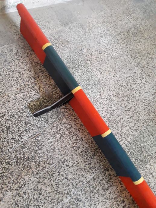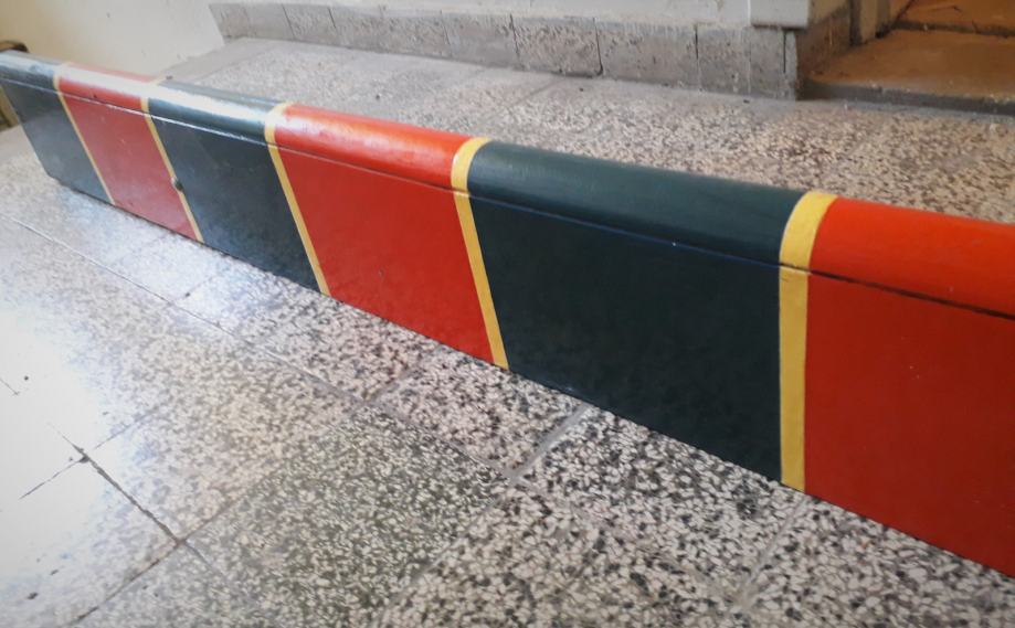 Veći šank (ili zidna polica) u bojama HNK Hajduk Split sa dva metalna zidna nosača, višestruko lakirana veličine 2,4 metra, u dobrom stanju.